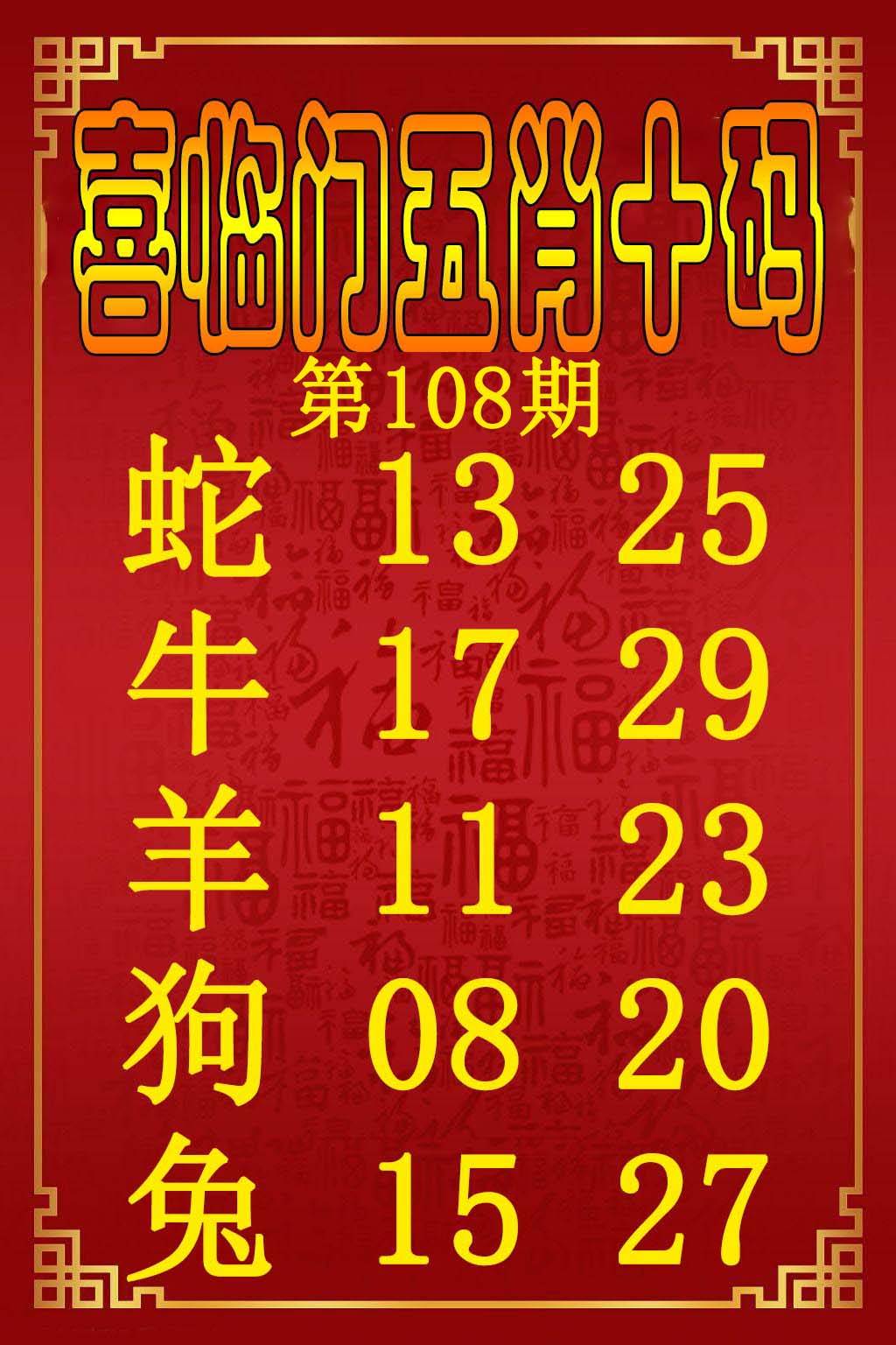 | 108期推荐⑤肖:兔猪羊鼠鸡 |